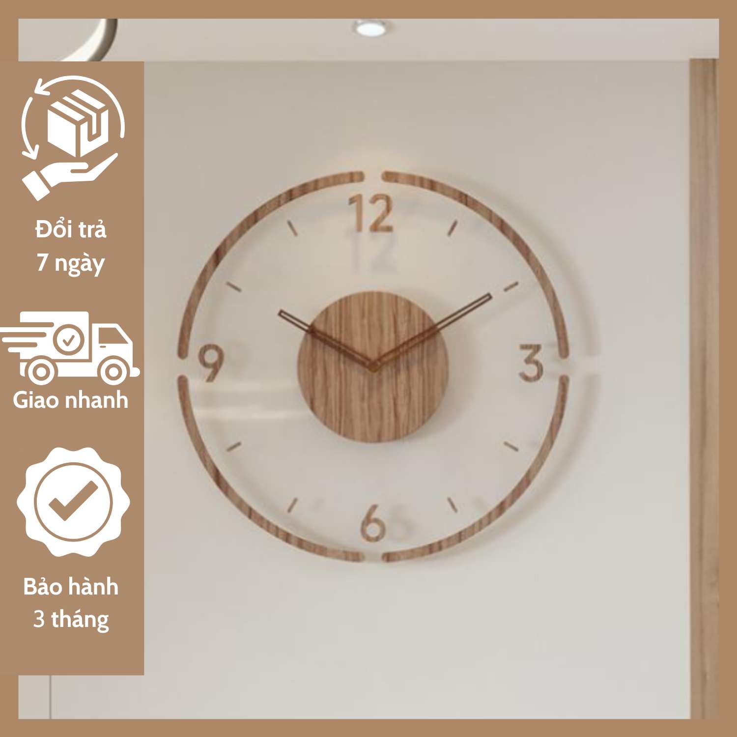 Thiết kế độc đáo, sang trọng với gam màu nâu gỗ hiện đại, chiếc đồng hồ này là điểm nhấn hoàn hảo cho không gian sống và làm việc. Chất liệu gỗ cao cấp được xử lý chống oxy hóa và ăn mòn, đảm bảo bền đẹp theo thời gian.