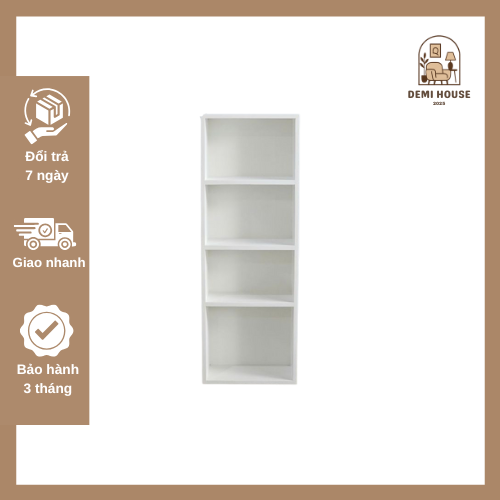 Kệ sách đứng 4 tầng màu trắng thiết kế đơn giản, gọn nhẹ, chất liệu MDF bền đẹp – giải pháp lưu trữ lý tưởng cho phòng nhỏ, góc học tập, làm việc.